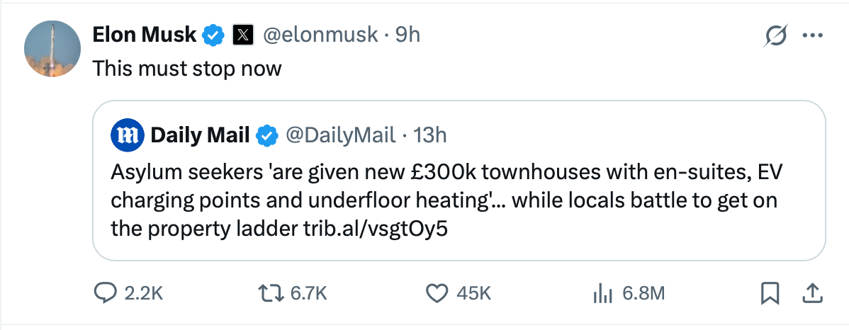 Government officials, meanwhile, have pushed back against the accusation, insisting that immigration and housing policy remain guided by law and humanitarian need—not political calculation. Still, with one of the world’s most influential tech figures now calling attention to the issue, pressure is mounting on ministers to clarify their long-term intentions.