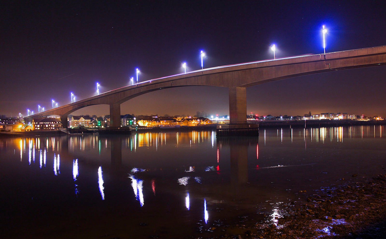 The Itchen Bridge, spanning the River Itchen, connects Woolston to the city center and was built in 1977. It has gained notoriety as a toll bridge generating significant revenue for the Southampton Council and is also known as a suicide hotspot.
