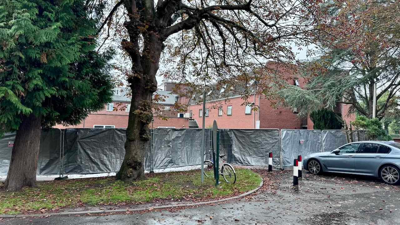 Less than a week after images emerged showing newly arrived migrants smoking and chatting in the grounds of the Highfield House asylum hotel, the site is now surrounded by towering screens and reinforced fencing. The car park, previously open to the public, has been closed off entirely a move that will affect local business owners negatively who rely on families travelling by cars.