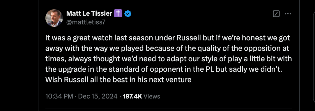 Le Tissier posted on his X account shortly after the sacking of Russell Martin was announced. Le Tissier acknowledged the entertainment value of Martin’s tenure while highlighting its fundamental flaws. “It was a great watch last season under Russell,” the Saints icon noted, before explaining that the team “got away with the way we played because of the quality of the opposition.” He pointed to a crucial failing: the team’s inability to adapt their style for Premier League-caliber opponents.