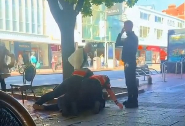 Startling mobile phone footage, filmed on Above Bar Street outside cafe Nero, shows the man—wearing a blue t-shirt—being grappled from behind and thrown to the concrete in broad daylight. Witnesses said his head came dangerously close to a kerb, with one onlooker saying the force “could have killed” him.